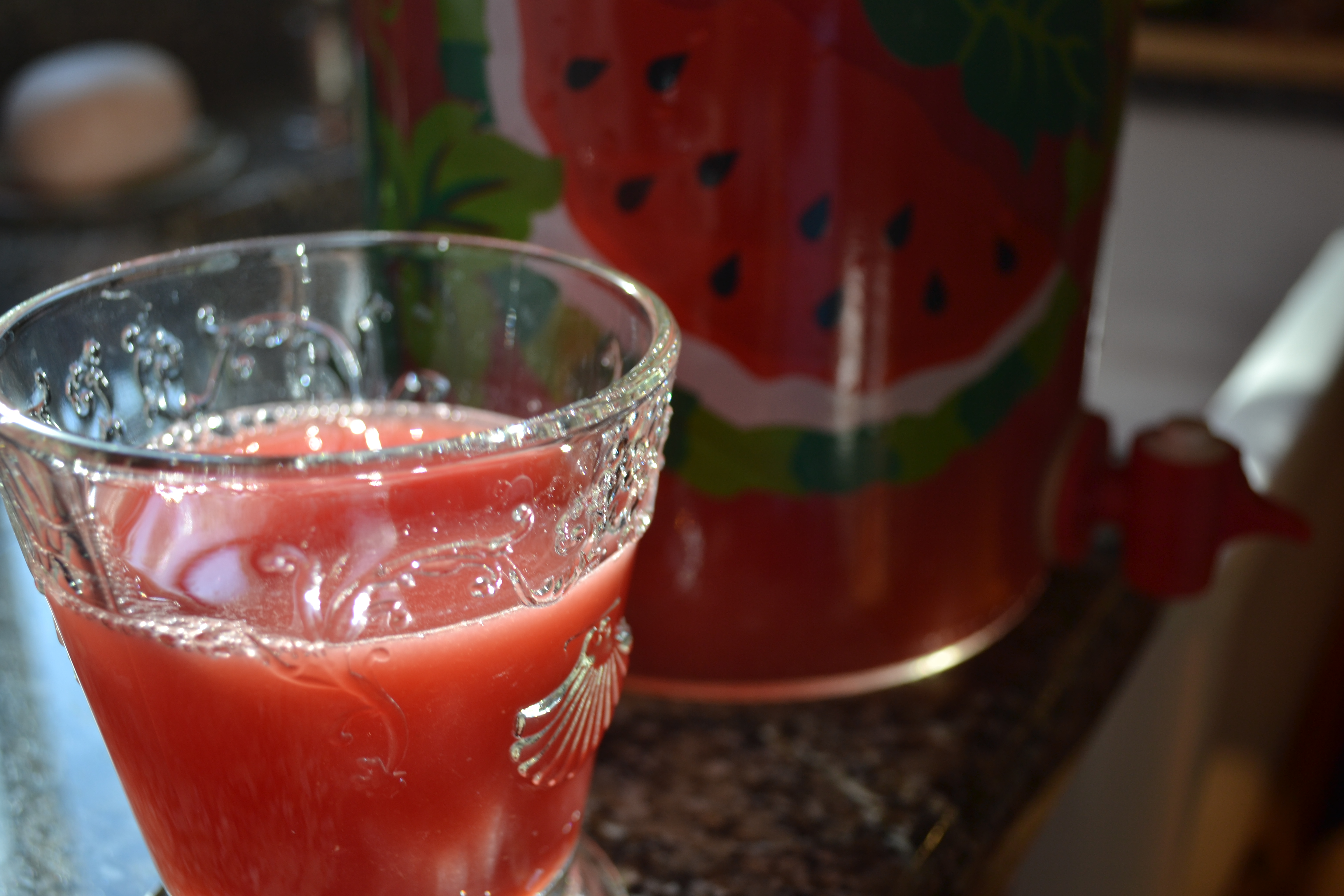 Using a powerful blender (I use my Vita-Mix), process the watermelon until it’s puréed. Let the foam settle on the top. Scoop off as much as you can, but don’t worry about it too much or you’ll scoop off the watermelon juice, too. You may have to do this in batches. Add the watermelon juice to a large pitcher. You need a very large one. (I got mine at a hardware store and for $10 it was a steal) Add the 2 cups of Ruby Red and stir. Serve over ice.