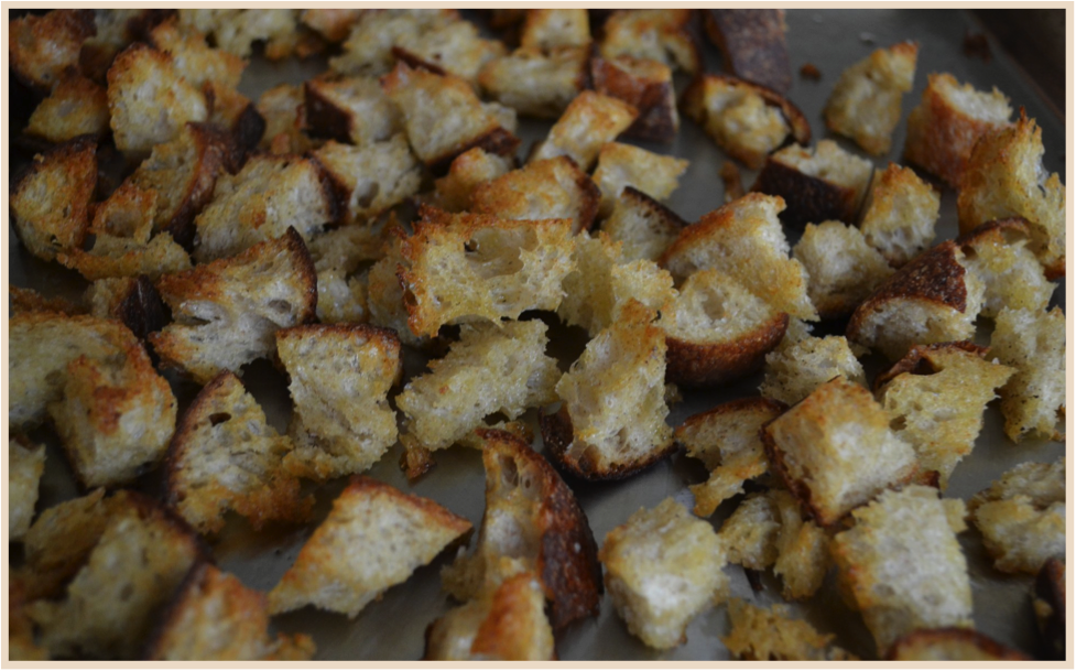 - 6C garlic croutons – (¾ of a French boule, ¼C EVOO, 1tsp garlic powder, salt & pepper)
