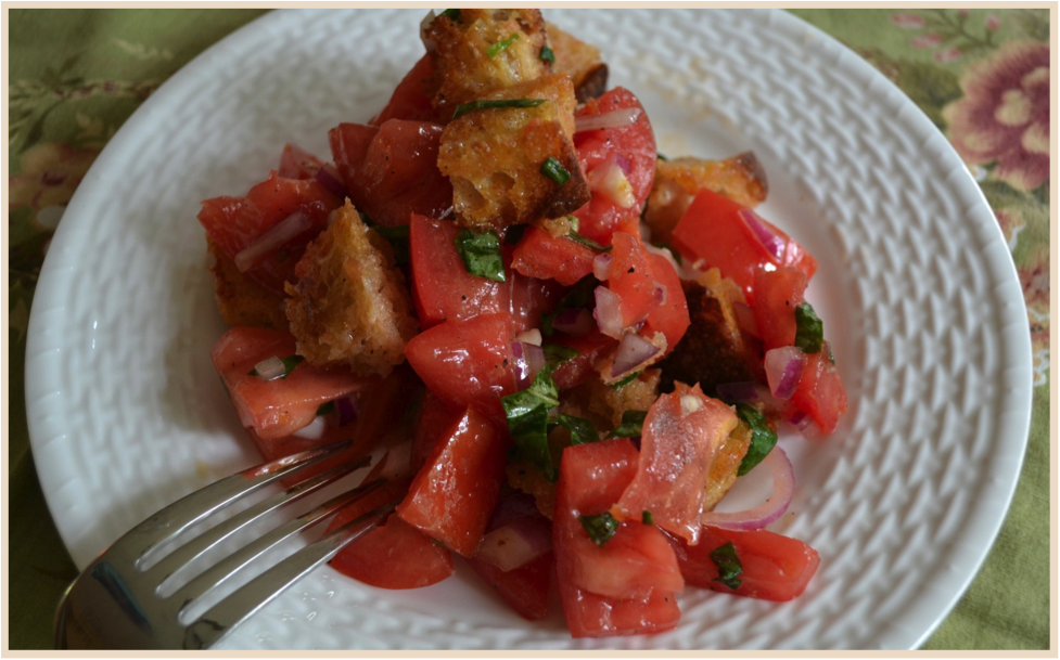Feeling like summer is slipping away? Go to the market or run to your garden or farm stand and pick up 2 pounds of rosy plum tomatoes (organic San Marzano if you can find them) and make this salad. This recipe keeps you in the summer kind of mood regardless of the weather outside. Serve it with a chilled glass of Pinot Grigio and you have summer on a plate.