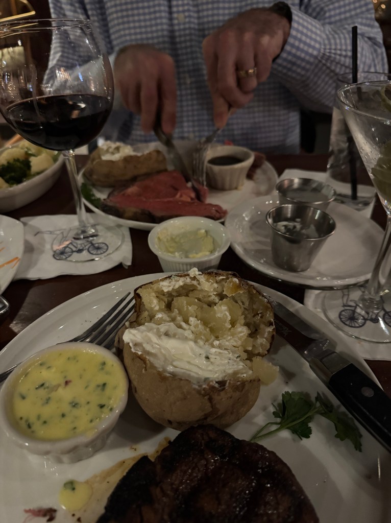 Since that moment, The Beverly Depot has held a special place our hearts. Over the years, it has been the backdrop for so many of our milestones – years of brunch with Santa (matching outfits included), retirement parties, birthday dinners, date nights, family gatherings, and quick meals at the Saloon (aka the bar) after stepping off the train from the city. When our oldest daughter eloped in 2022, it was only fitting that we celebrated with a special family dinner there – champagne flowing, smiles all around. And through it all, I’ve never once changed my order whether at The Beverly Depot or its sister restaurant, The Hardcover: a petite filet mignon, medium, with béarnaise sauce (in that sweet little white ramekin) and a baked potato with lots of butter and sour cream.